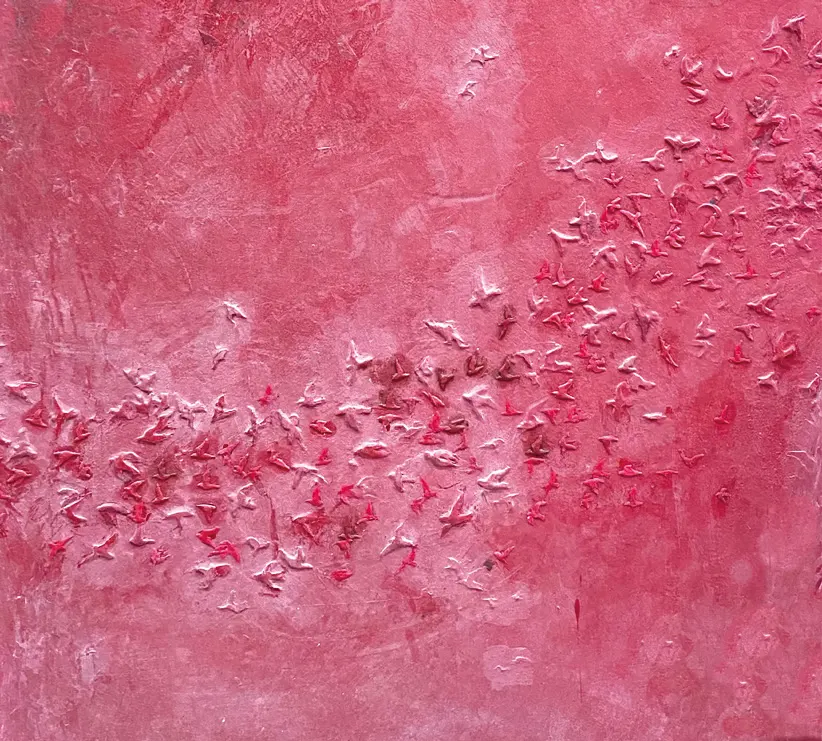 La banda de estorninos que la rodea representa la presencia del Espíritu Santo. Su movimiento inesperado trae nuevas posibilidades.