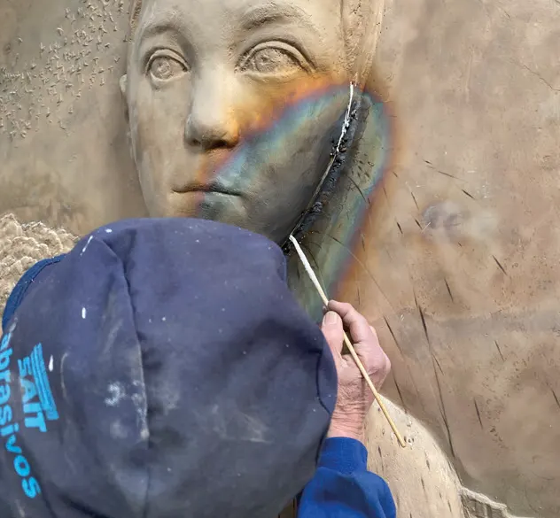 Una vez obtenidos los modelos definitivos, se elaboraron los moldes en resina y escayola que permitieron pasar cada pieza a la fundición en bronce. El proceso siguió la técnica tradicional de “cera perdida”, que consiste en crear una reproducción en cera de cada fragmento, rodearla de un revestimiento resistente y fundirla para sustituirla por el metal líquido. Tras la fundición, cada pieza se repasó a mano, se soldó, se integró y se patinó hasta lograr el acabado final.
