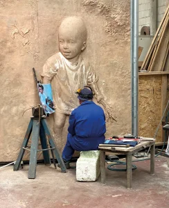 La creación de las Nuevas Puertas ha sido un proyecto largo y muy cuidado, que combina arte, técnica y coordinación. Todo comenzó con bocetos a mano y pequeños modelos en barro, donde Antonio López definió las expresiones, gestos y proporciones de cada figura. A partir de ahí, el equipo realizó ampliaciones digitales en 3D para llevar esas maquetas a tamaño real, ajustando volúmenes y detalles milimétricos.