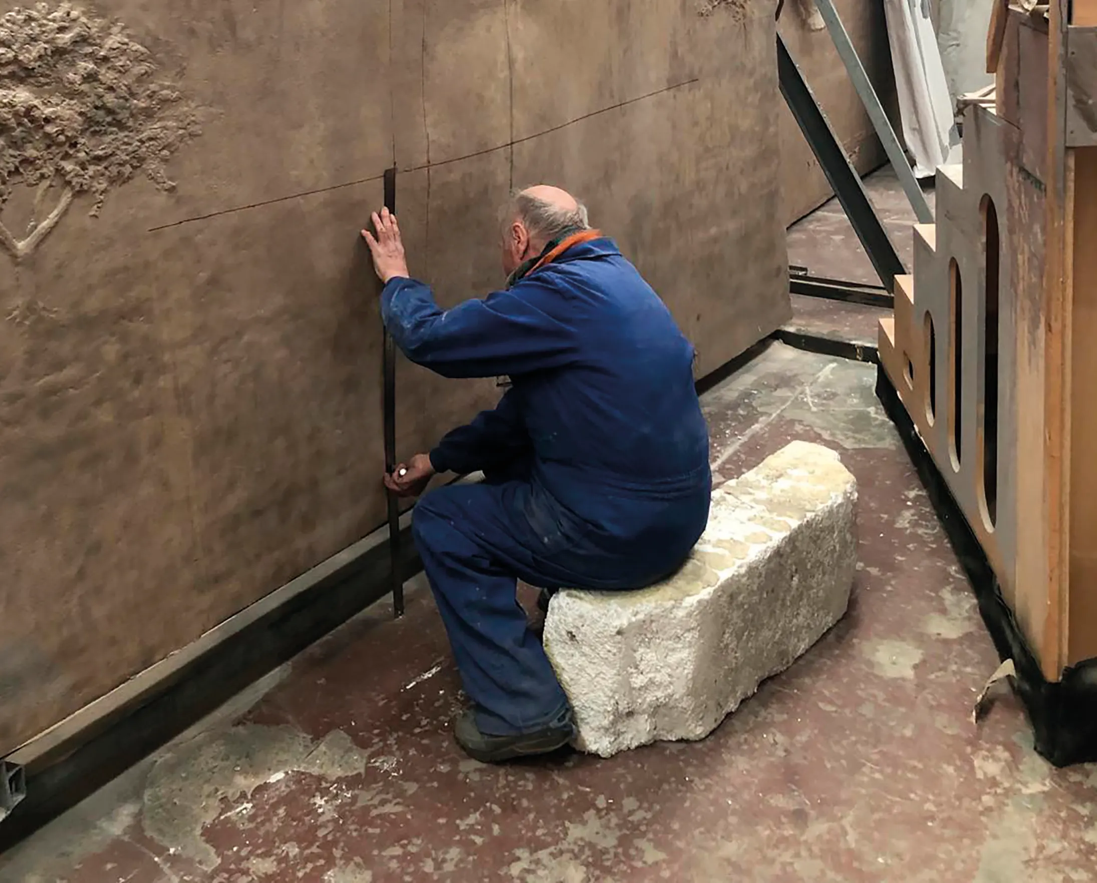 El proyecto no se desarrolló en solitario. Durante más de seis años Antonio López trabajó junto a un equipo de escultores y técnicos que hicieron posible la escala y complejidad de las puertas. Coordinado por Consuelo de la Cuadra, el equipo combinó conocimientos tradicionales con soluciones actuales para llevar cada detalle a su material definitivo.
