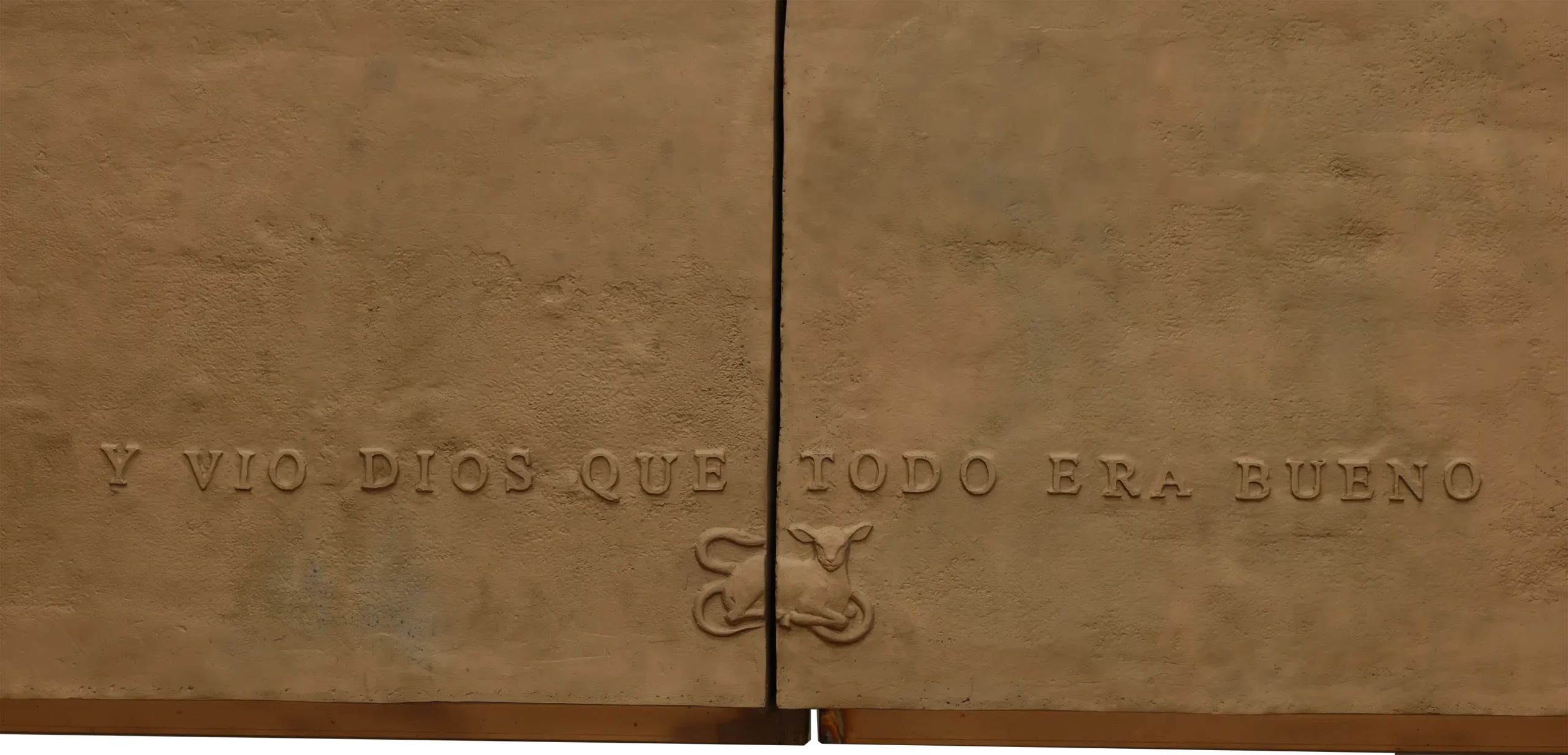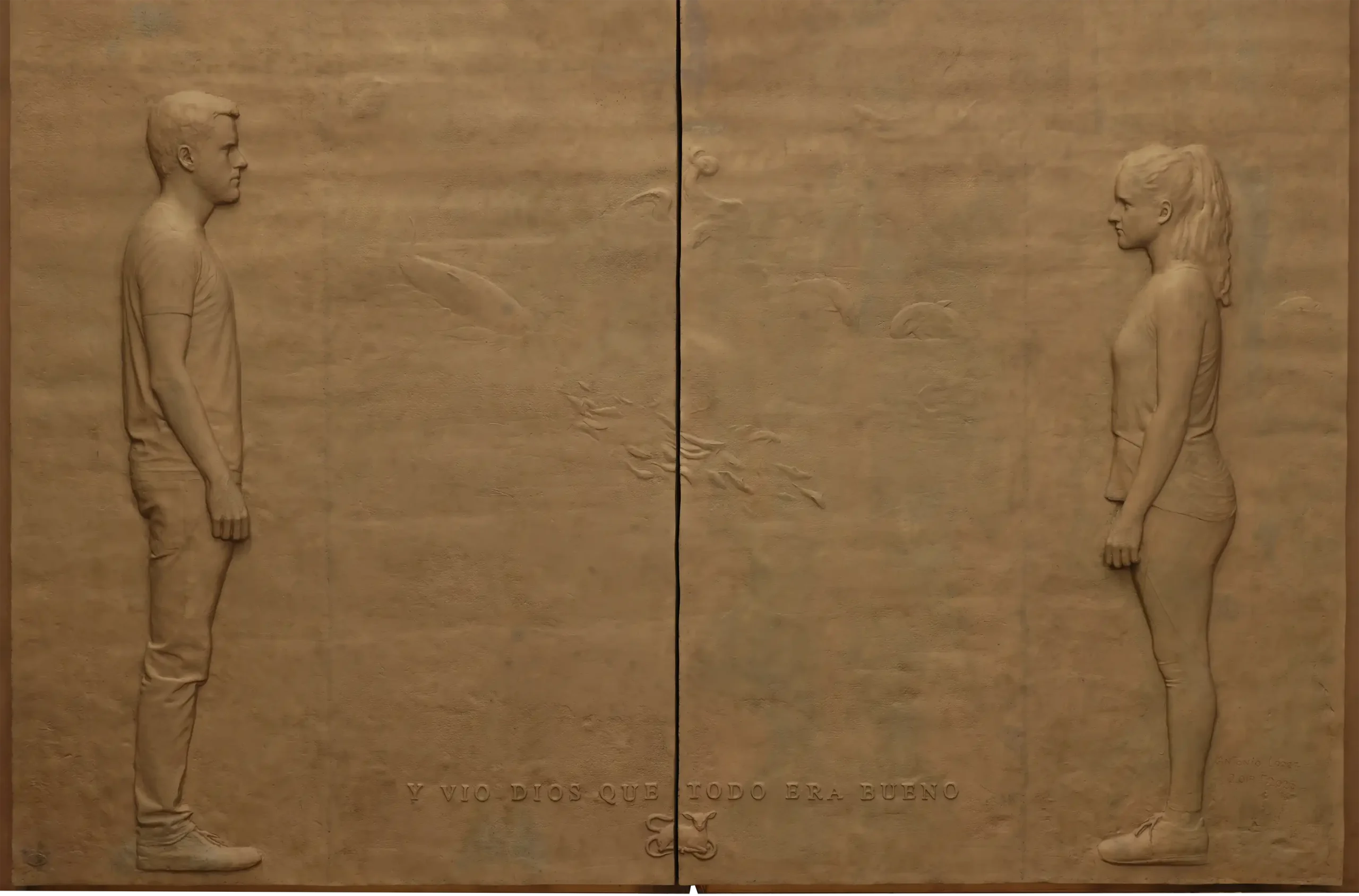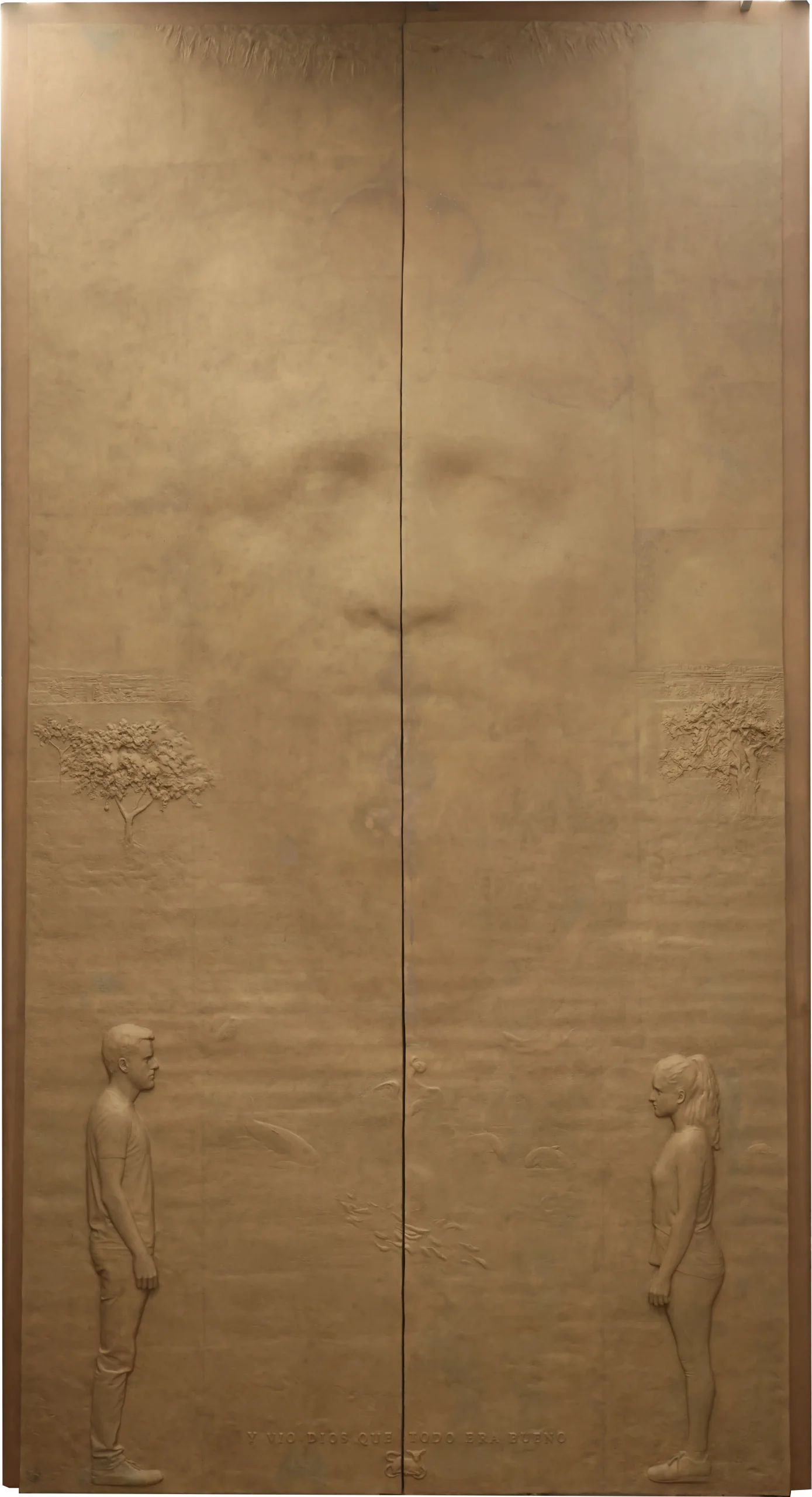 El relieve sugiere el primer impulso de la Creación, como si la materia aún estuviera tomando forma y Dios se revelara en ella. Antonio López plantea esta puerta como un recordatorio de nuestro origen y de la belleza del mundo que habitamos.