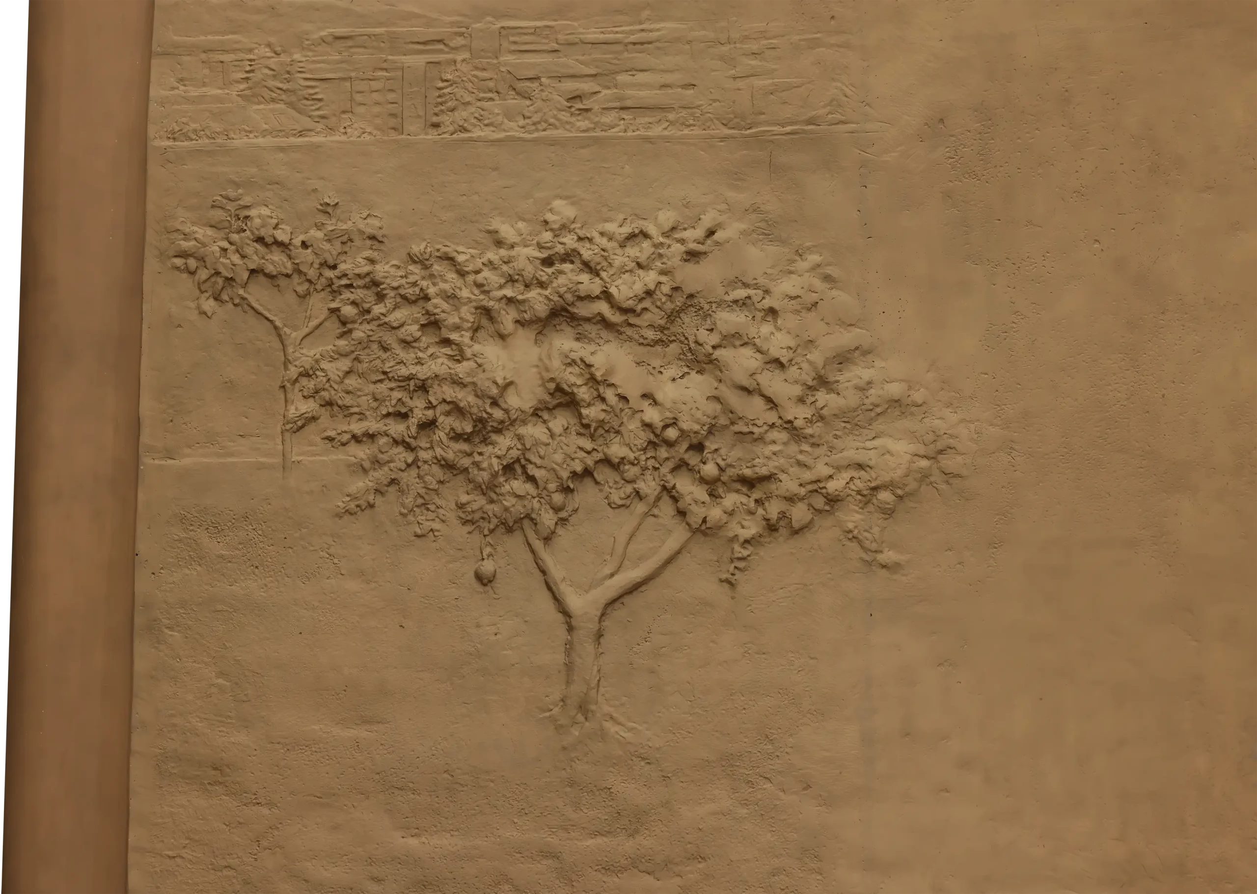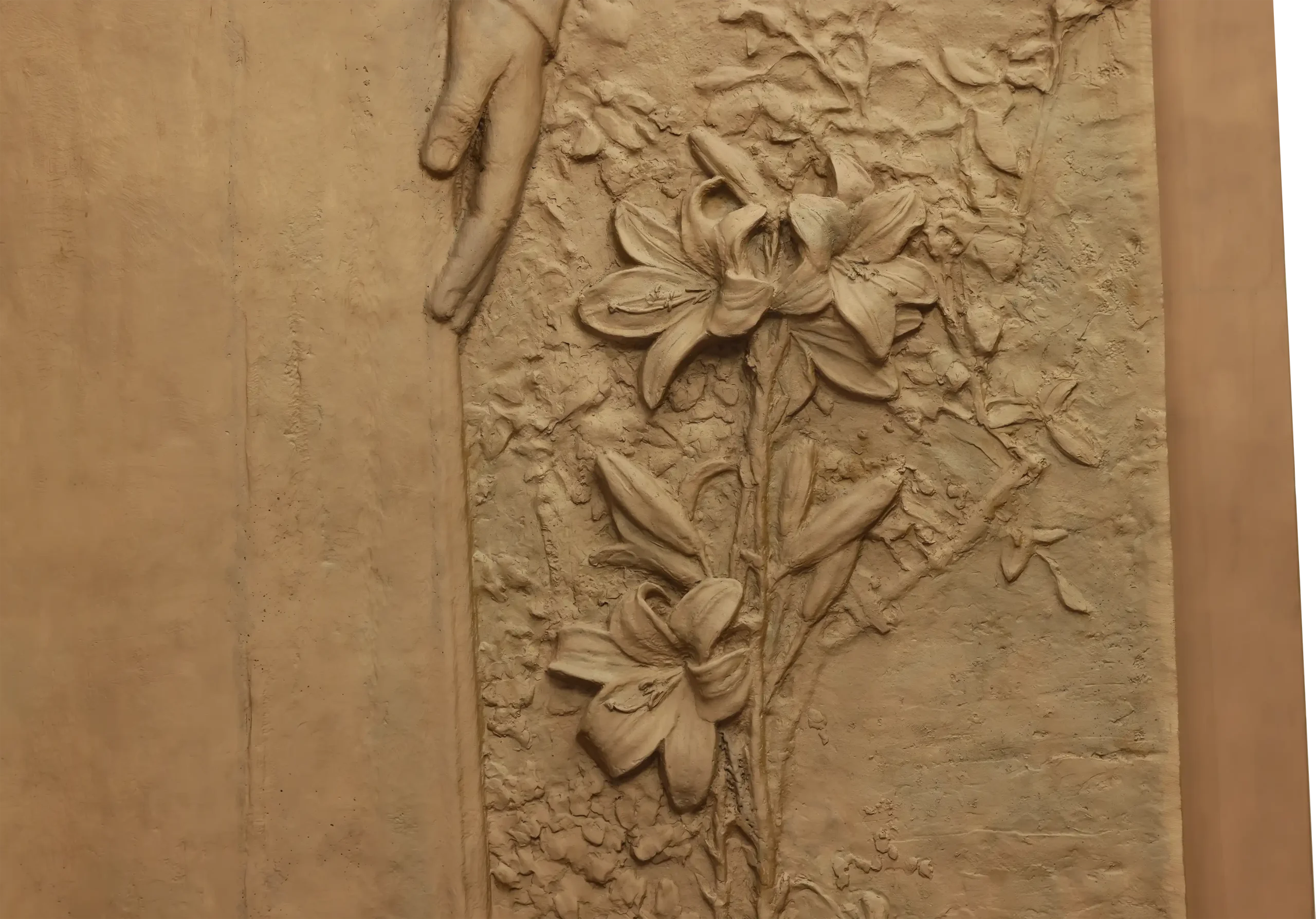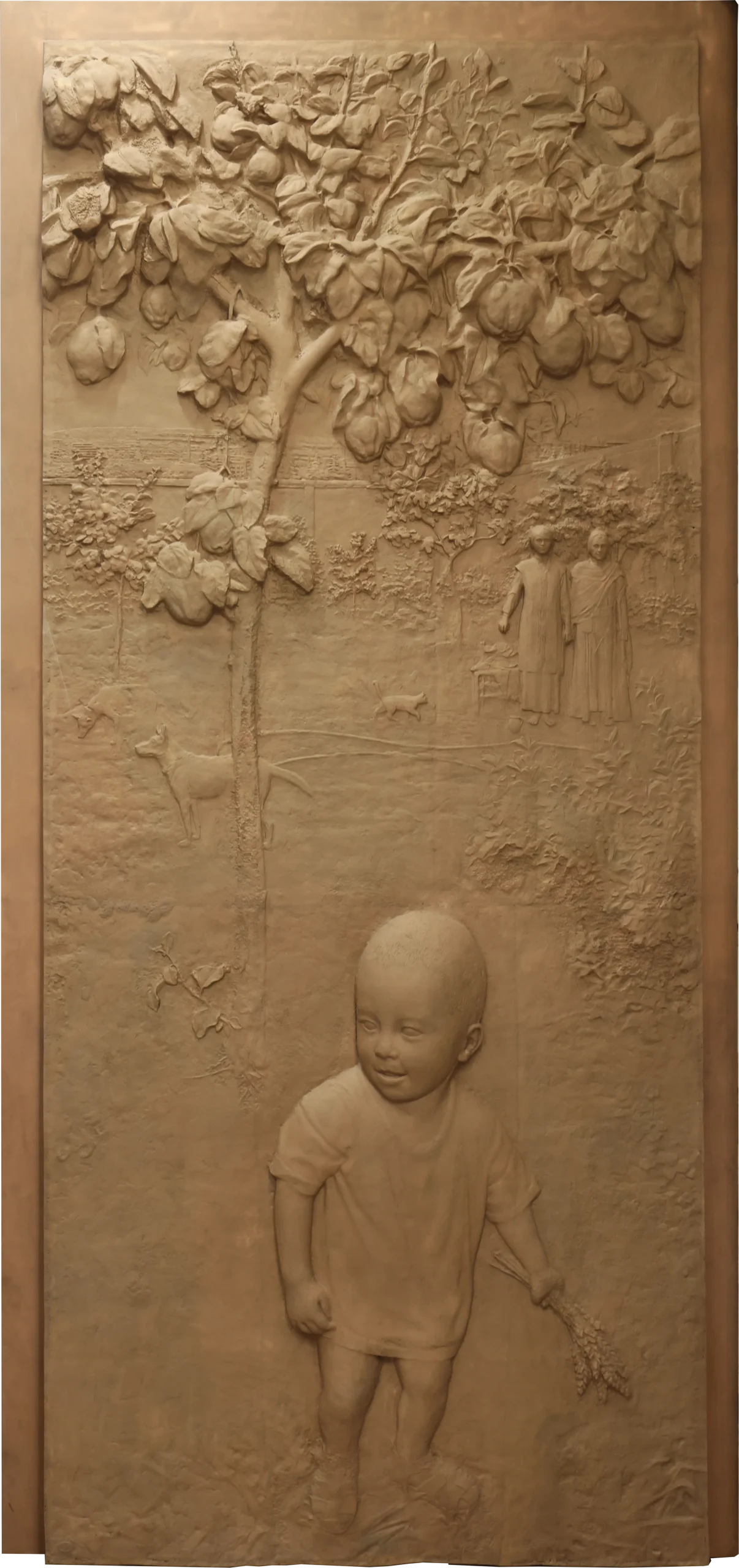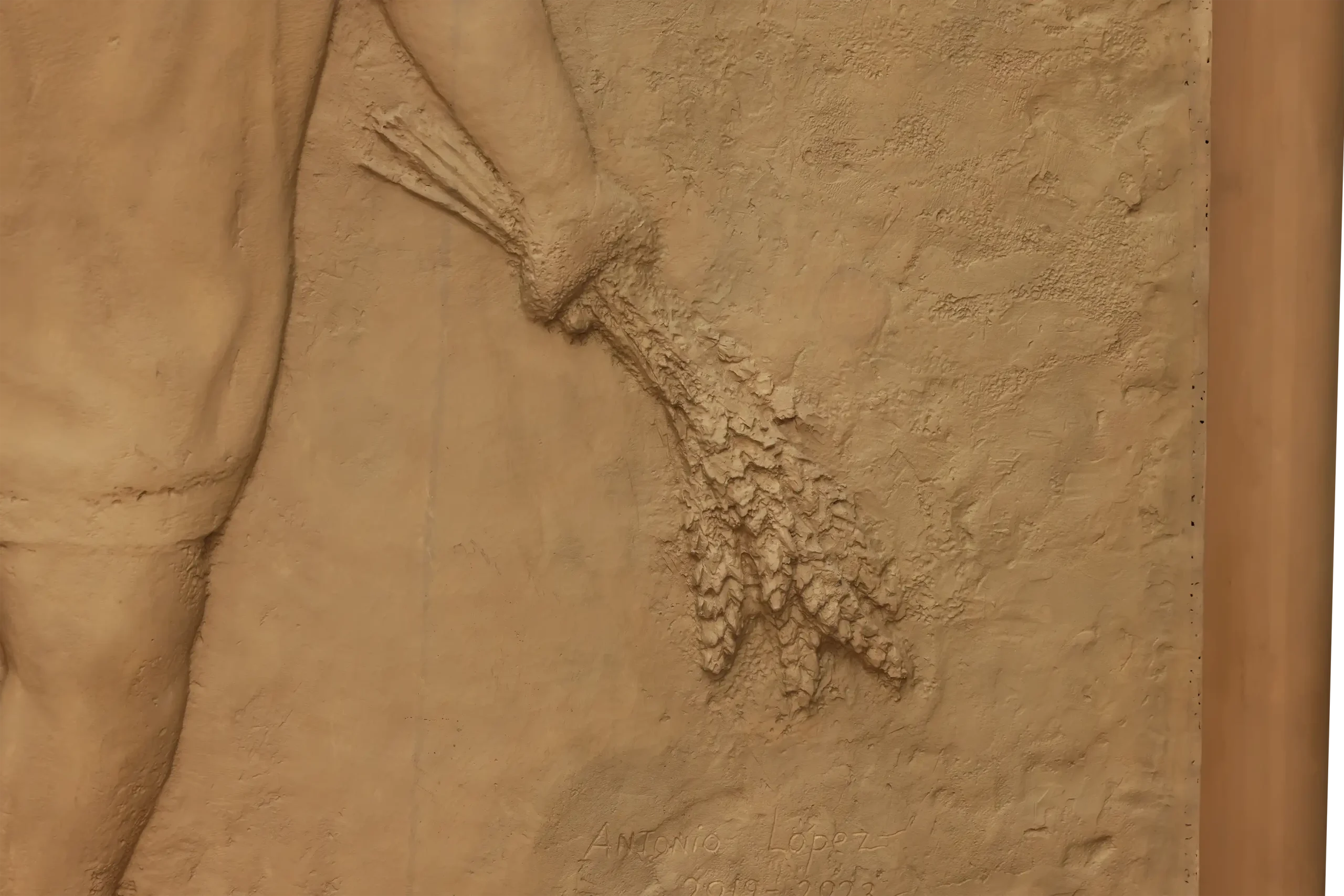 El relieve sugiere el primer impulso de la Creación, como si la materia aún estuviera tomando forma y Dios se revelara en ella. Antonio López plantea esta puerta como un recordatorio de nuestro origen y de la belleza del mundo que habitamos.